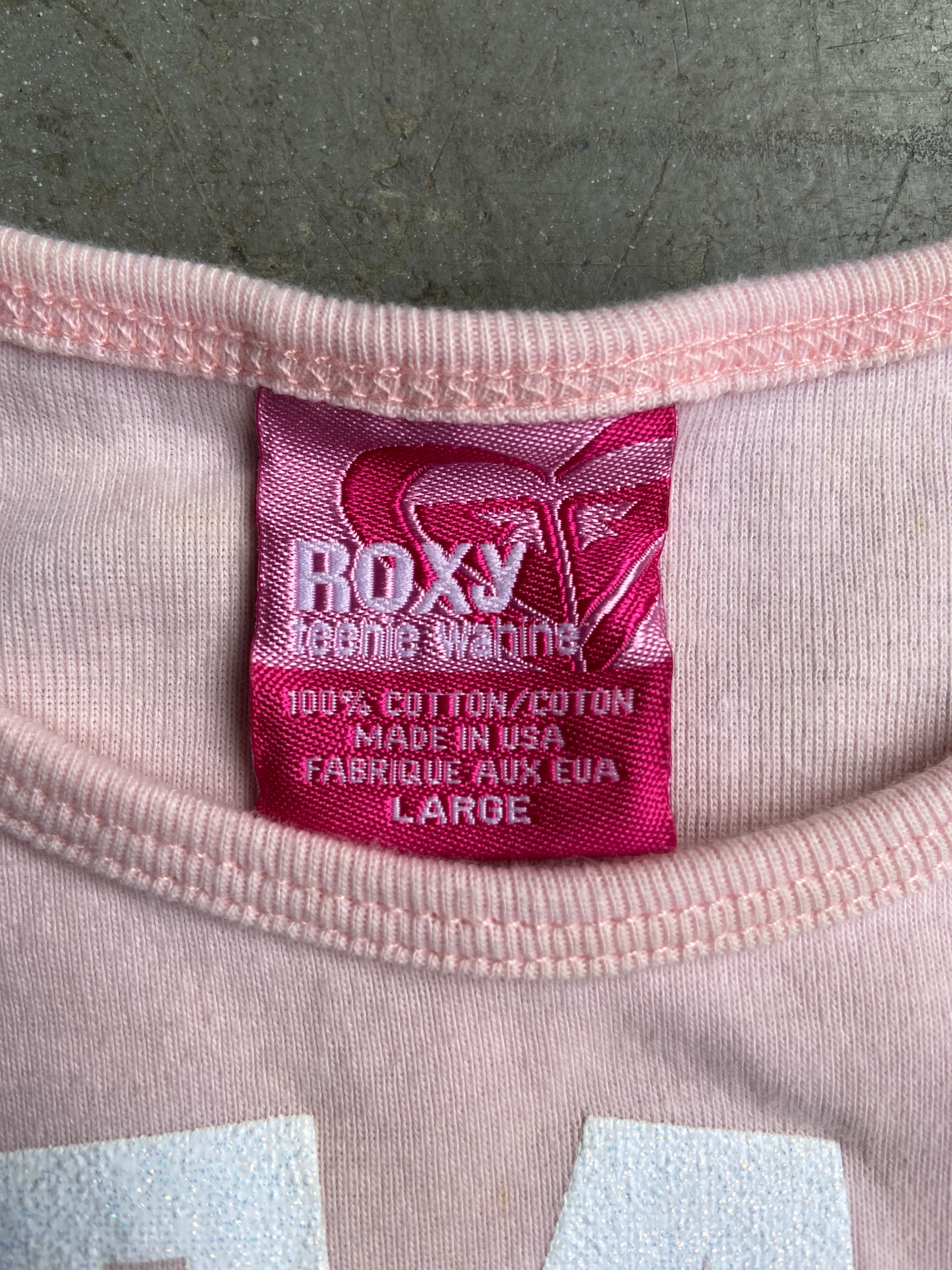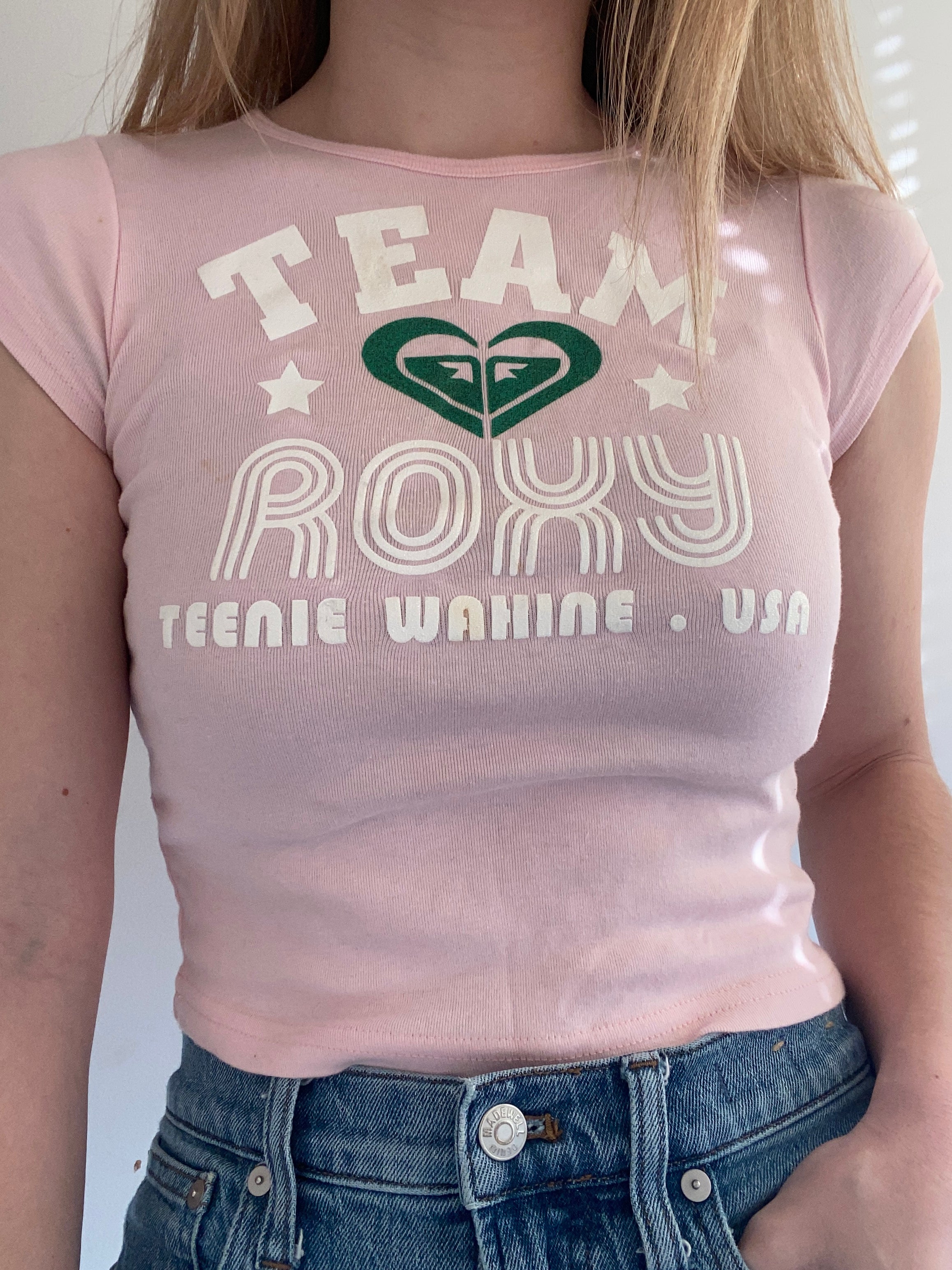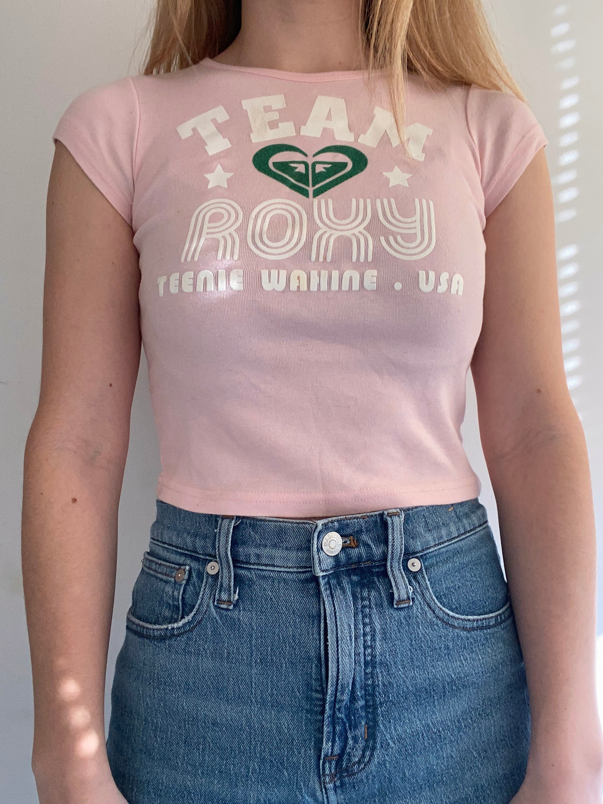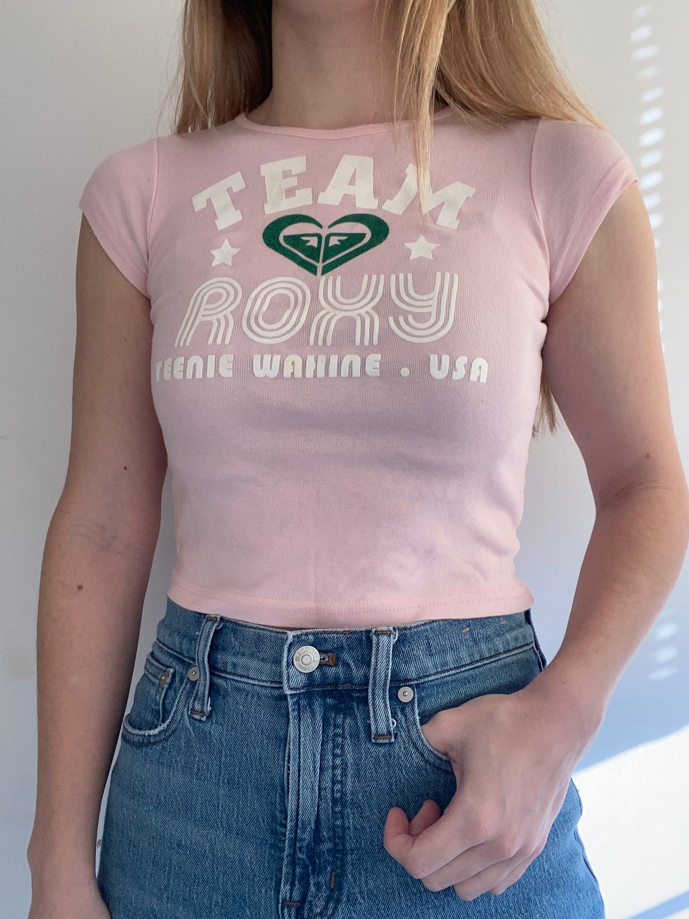 This rare early 2000s Roxy tee is a dream. Pale pink, fitted, and covered in the cutest graphics. A true Blue Crush-inspired piece that you'll want to wear with everything from skirts, to denim, to board shorts. Made in the USA.