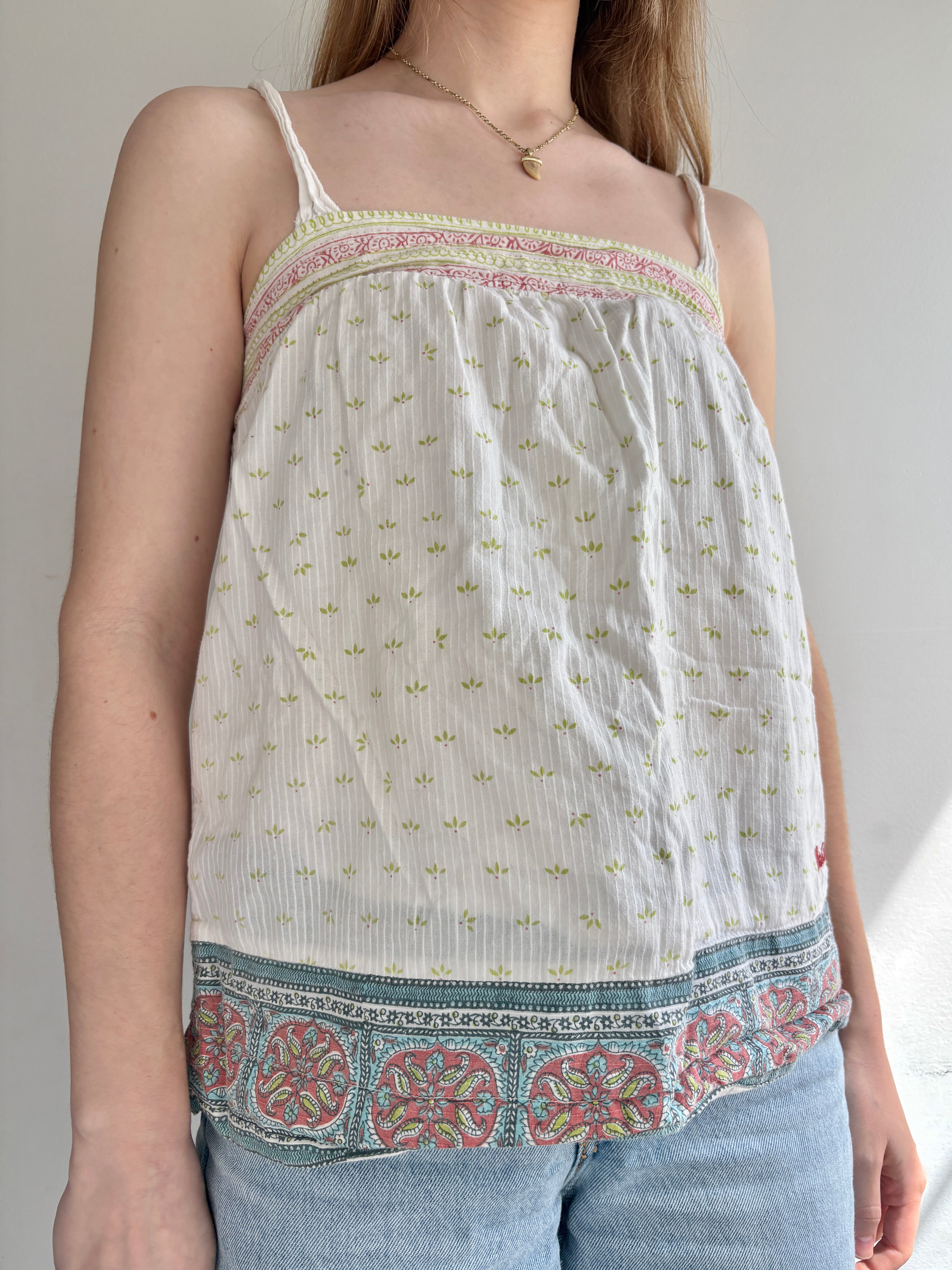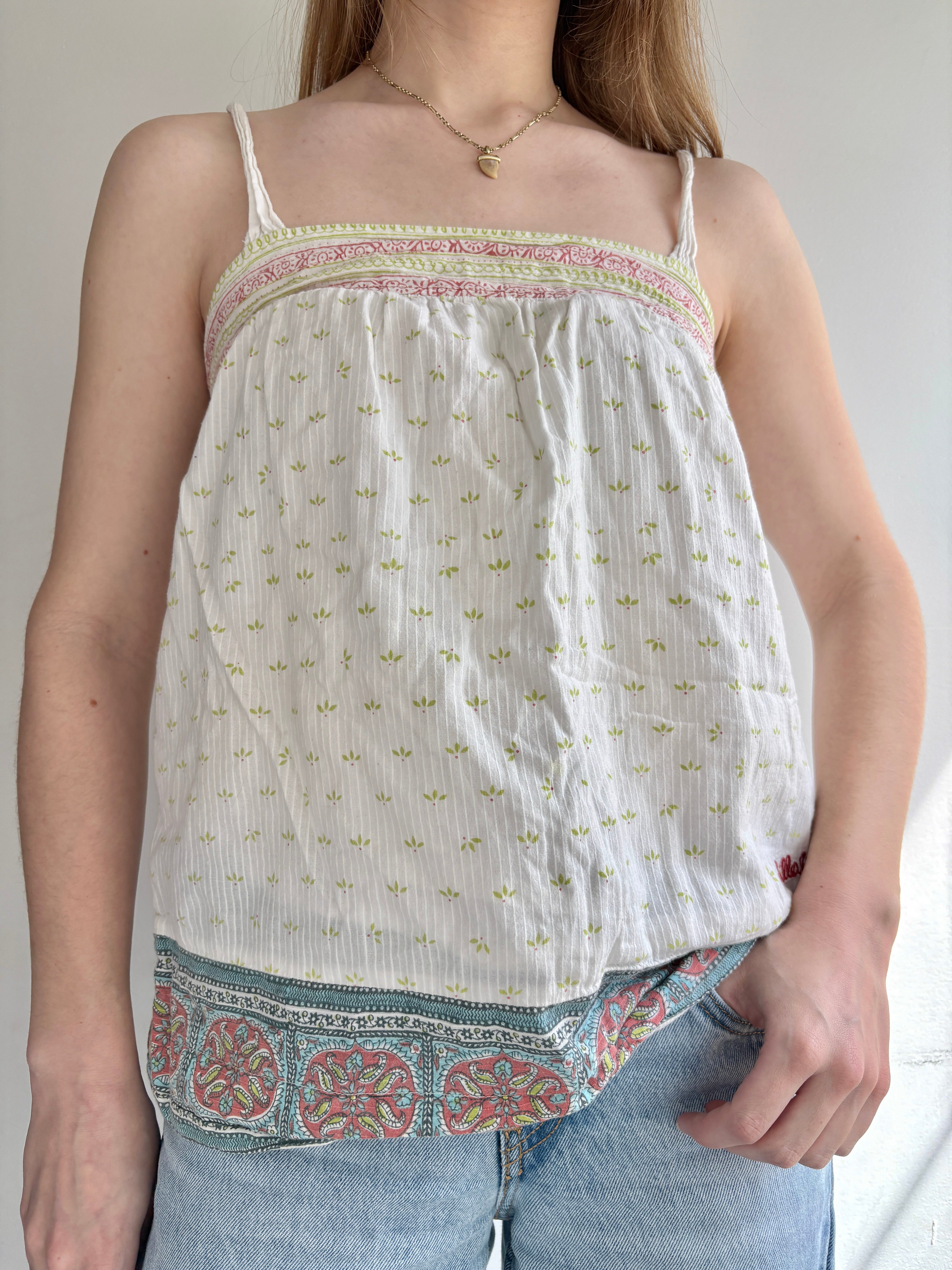 Breezy 2000s Billabong top, perfect for spring and summer. Loving the earthy block print and embroidered Billabong lettering on this one. 100% cotton and ready for coastal days.