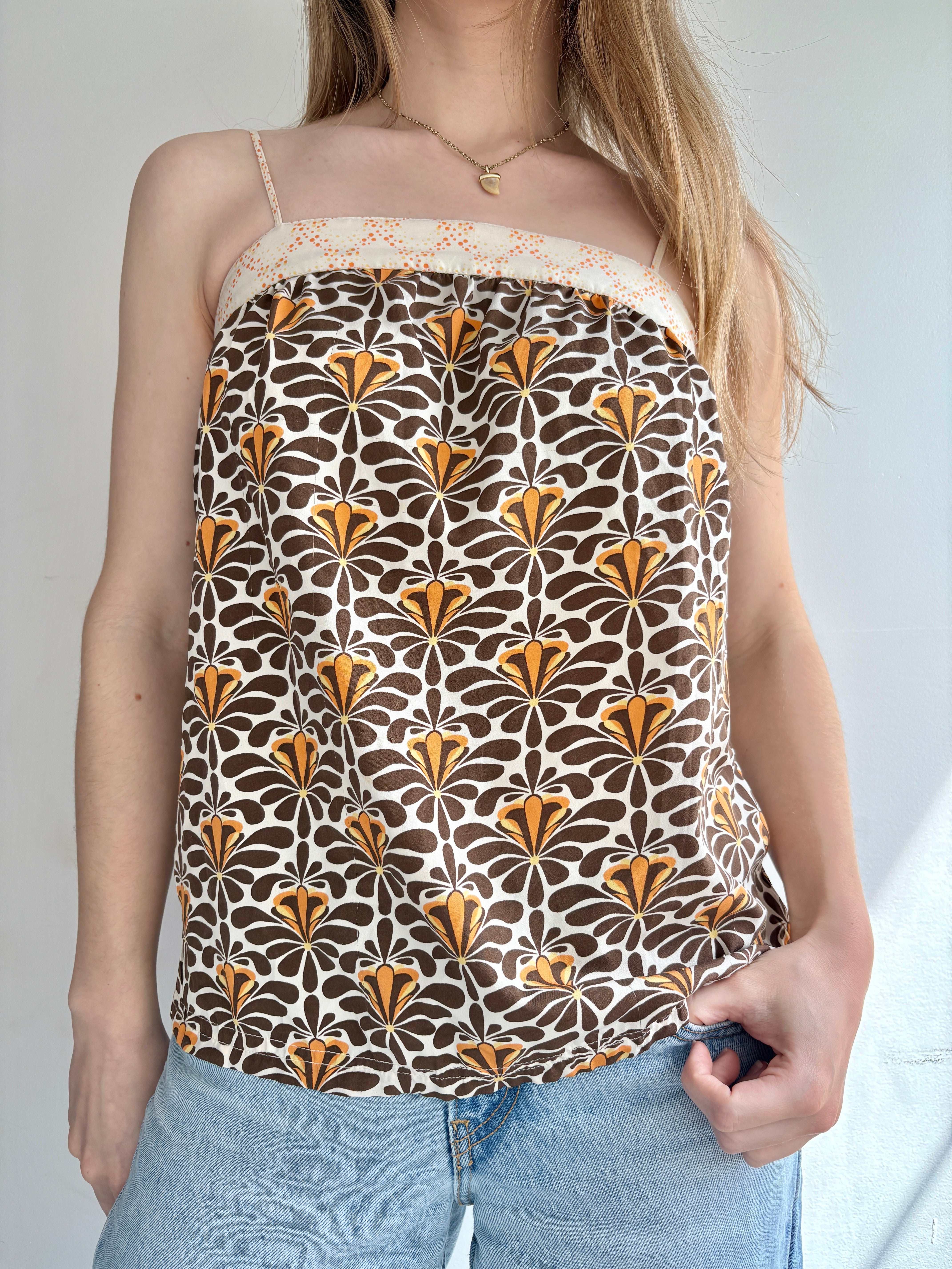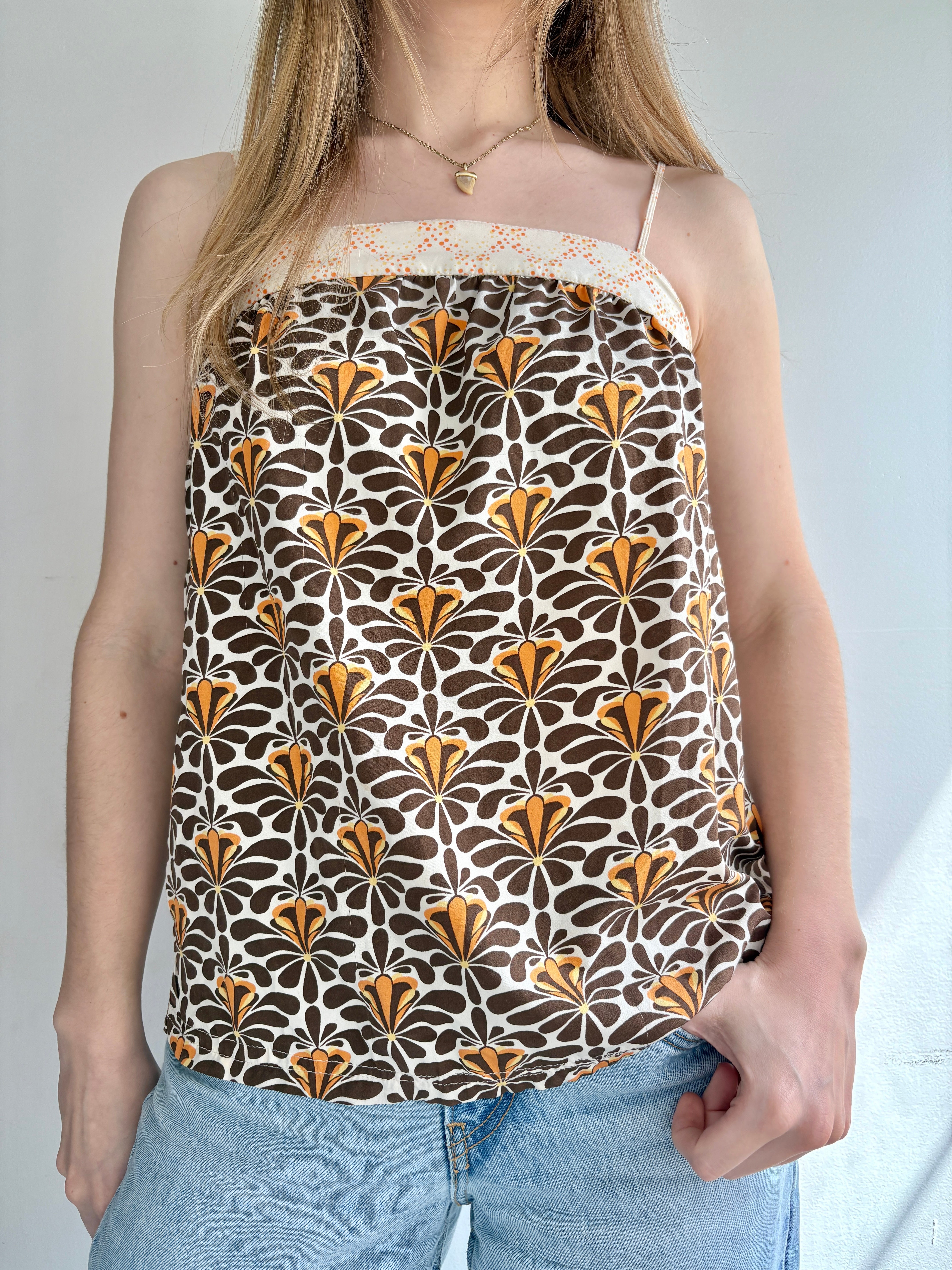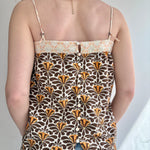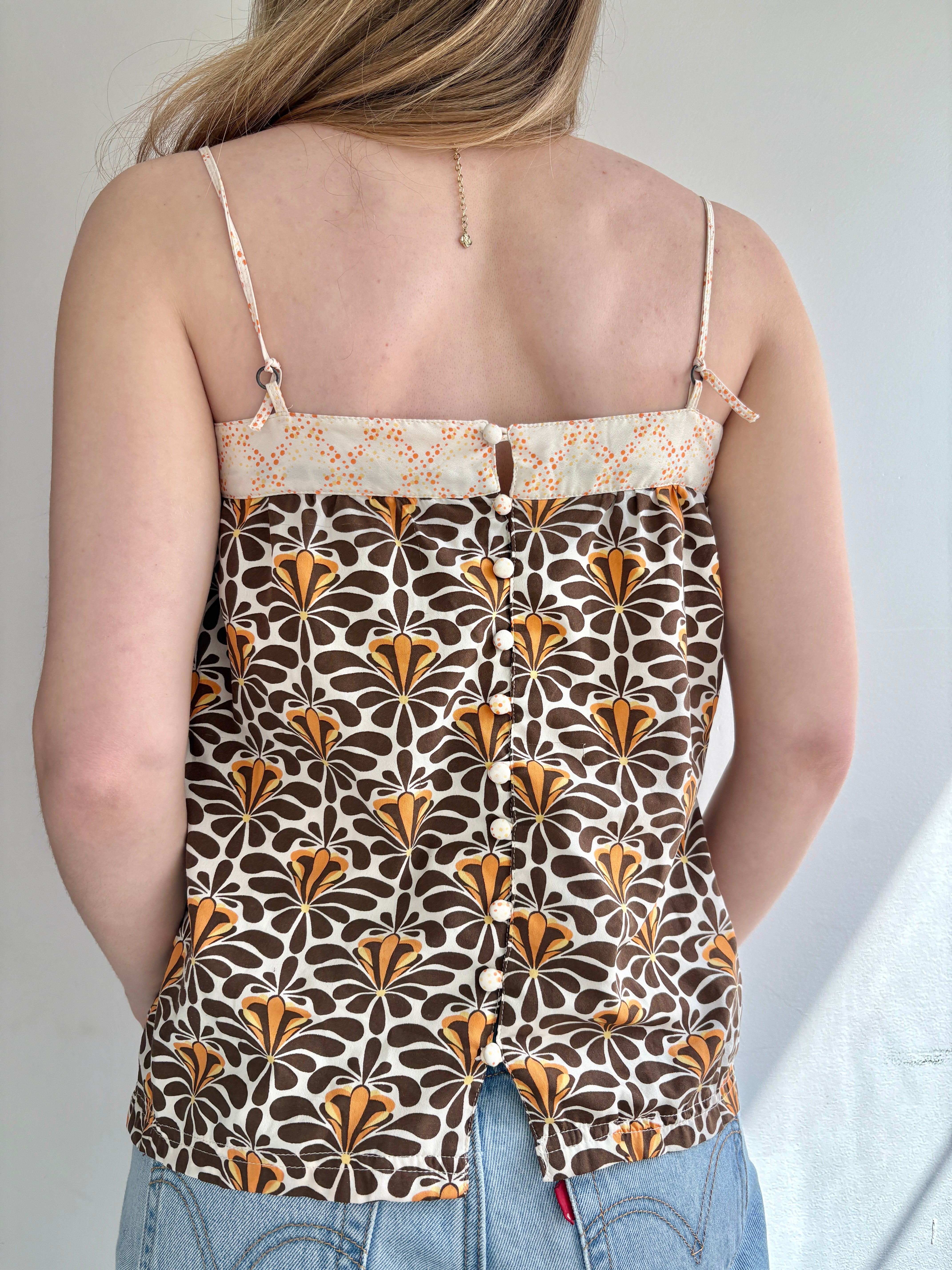 Early 2000s Billabong top with an awesome brown, orange, and white floral print, perfect for a natural look on spring and summer days. Love the button-down back detailing, embroidered Billabong lettering, and breezy, flowy silhouette on this one!