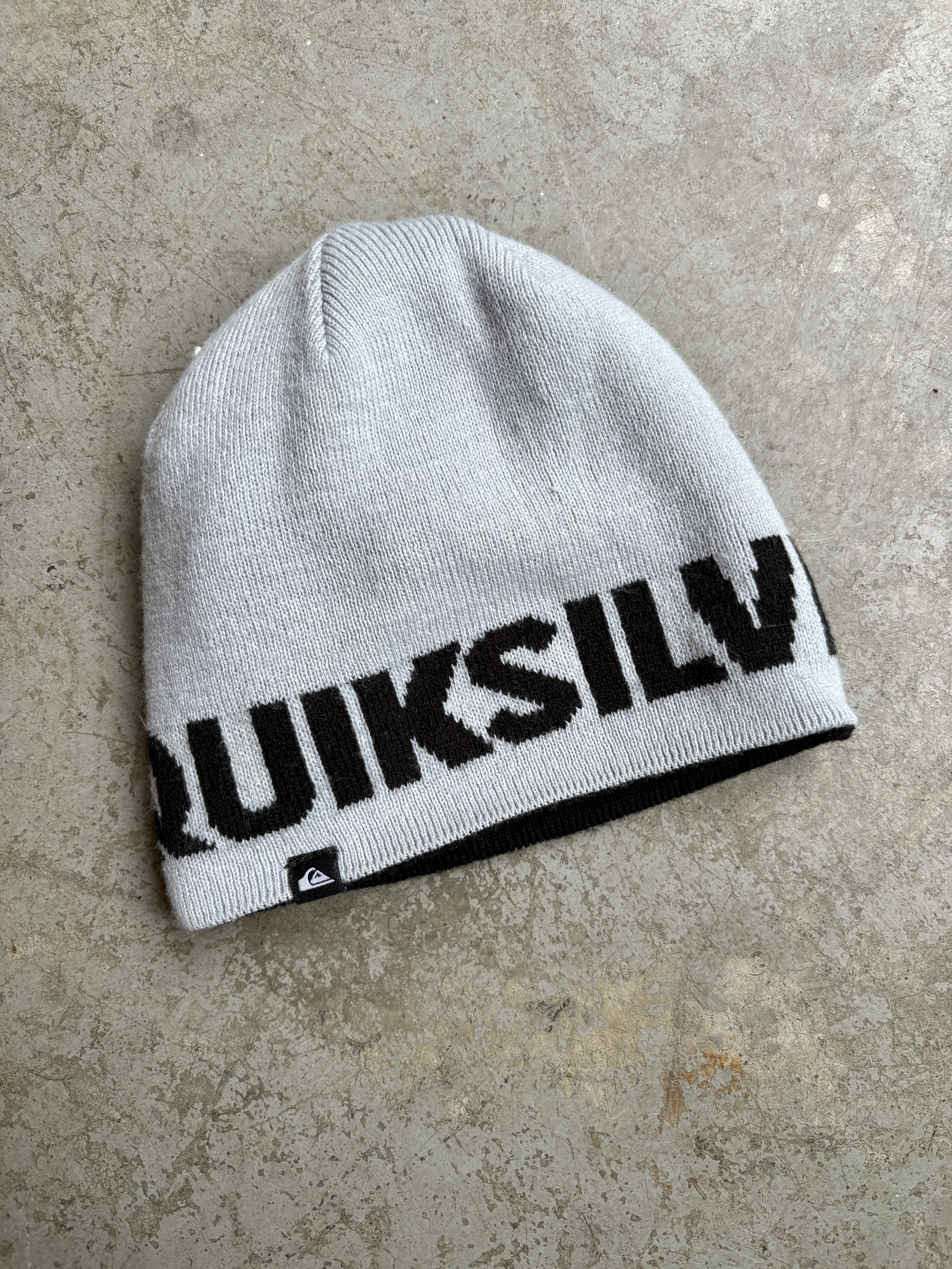 The accessory every street and surf-inspired outfit needs to make it complete. This early 2000s light grey/black knit skull cap will keep you warm on cooler days with stand-out Quiksilver lettering and colors that go well with everything in your closet.