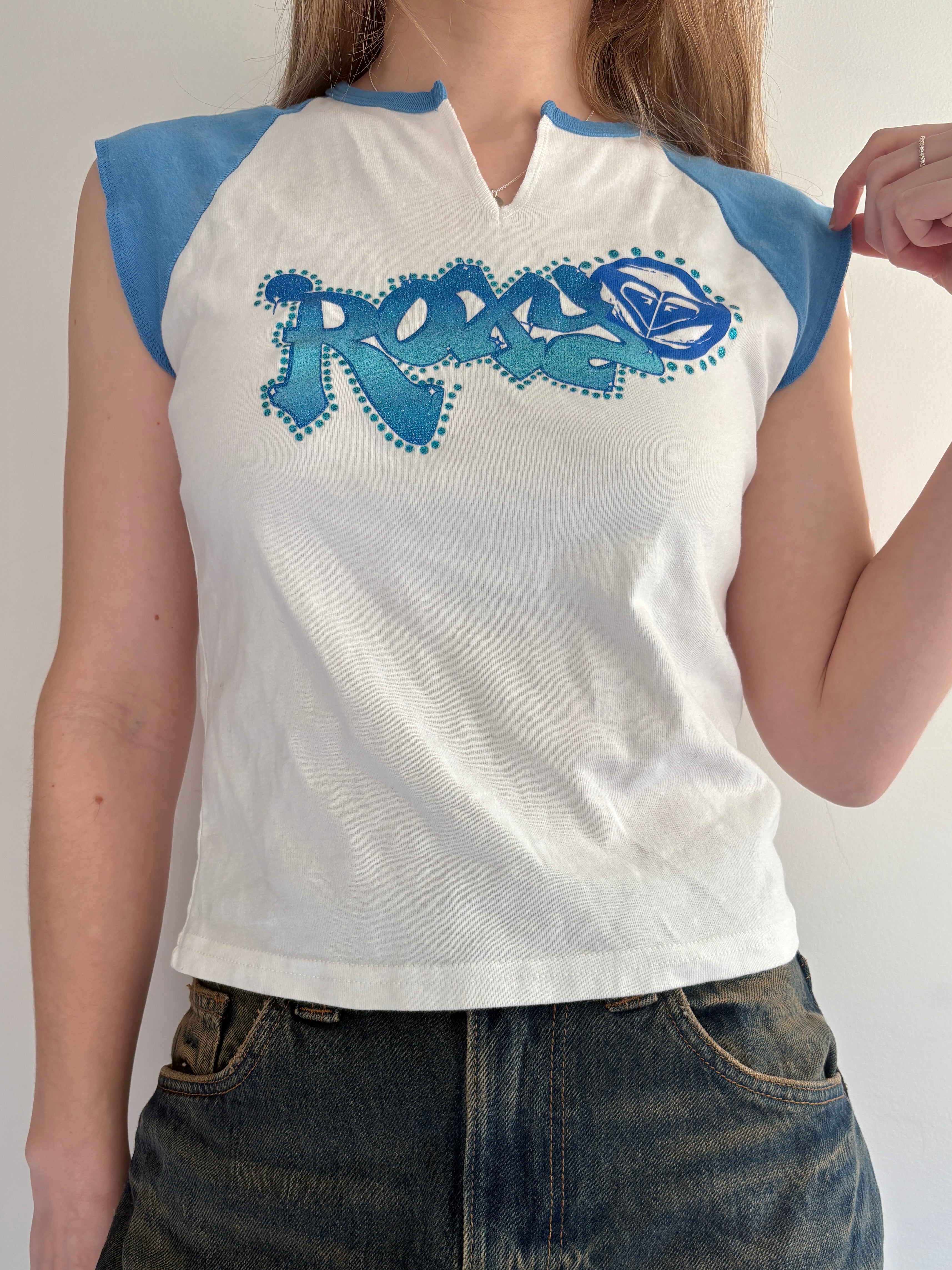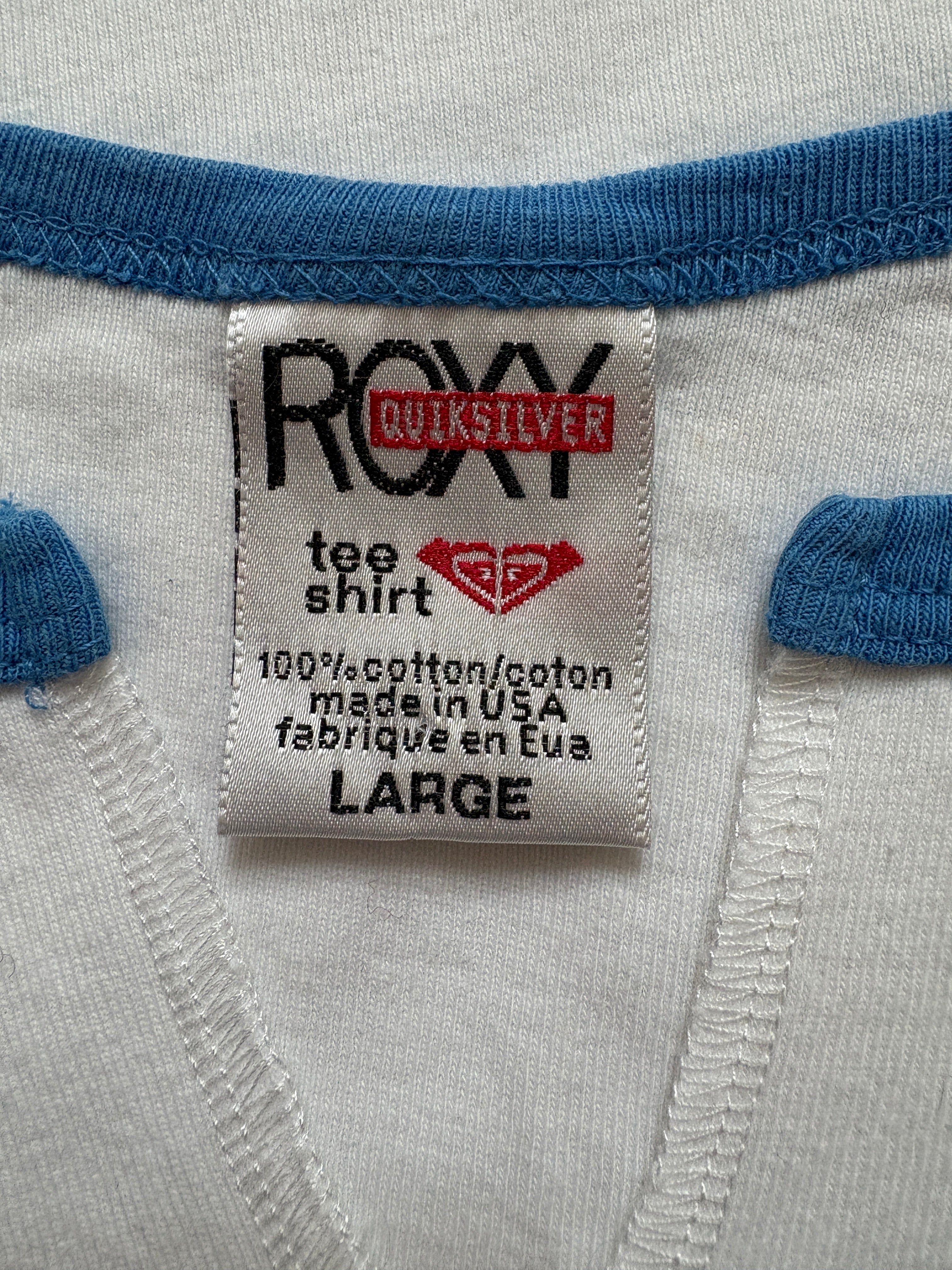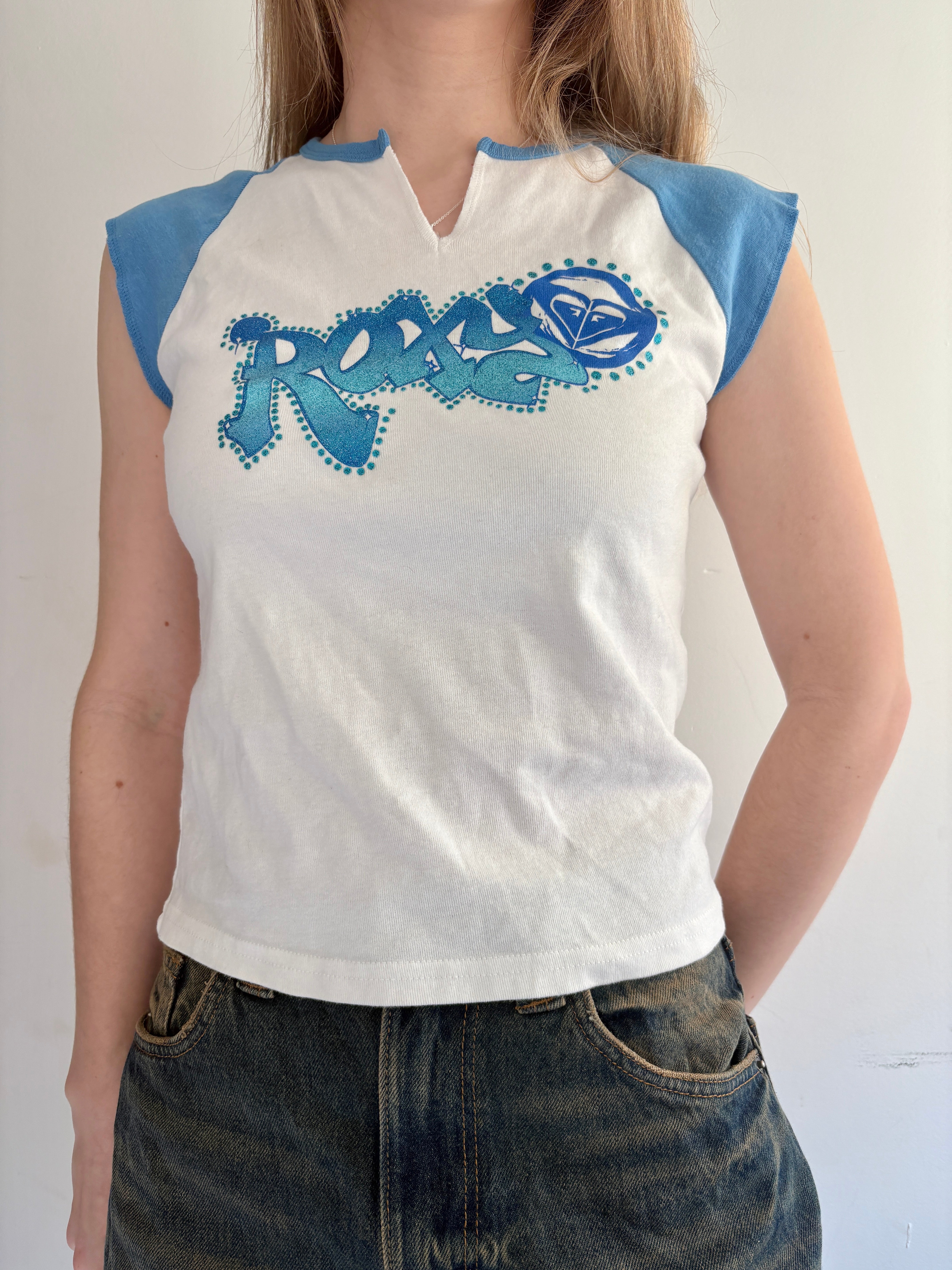 Blue Crush called… This vintage 90s Roxy tank looks straight out of the movie’s wardrobe. Just pair with some early 2000s boardies and you’re good to go. Love the glittery blue graphic on this one. Made in the USA!