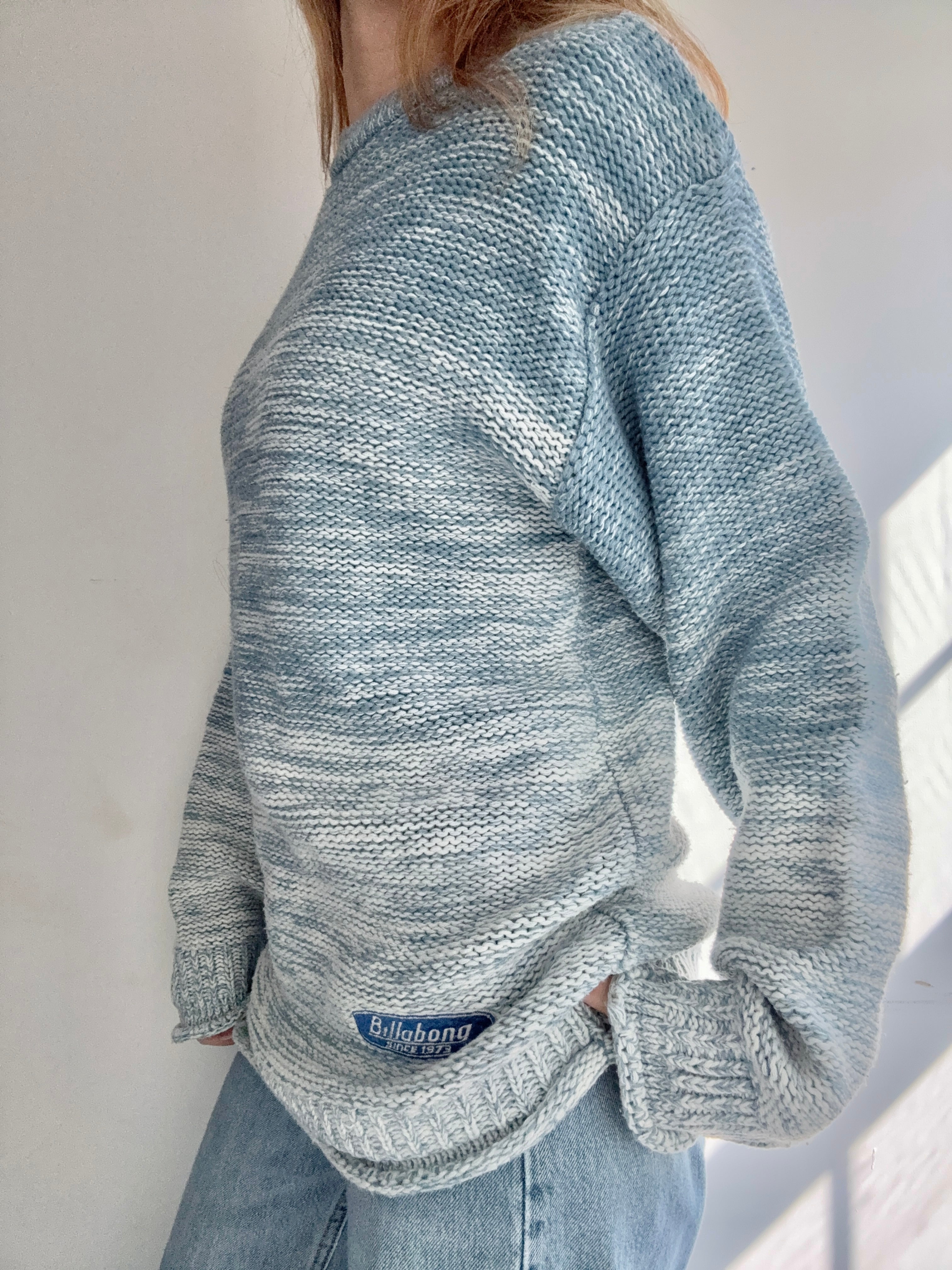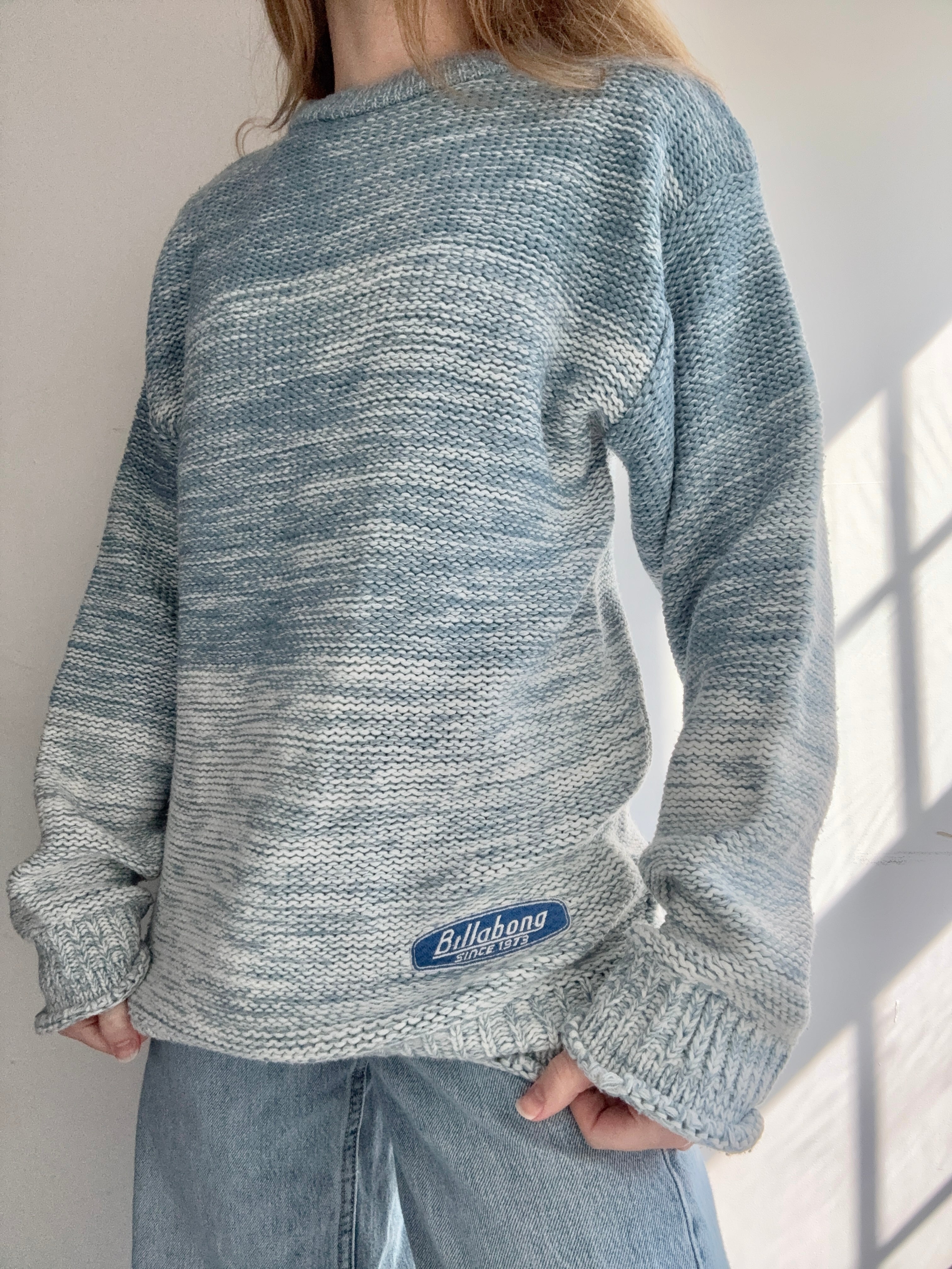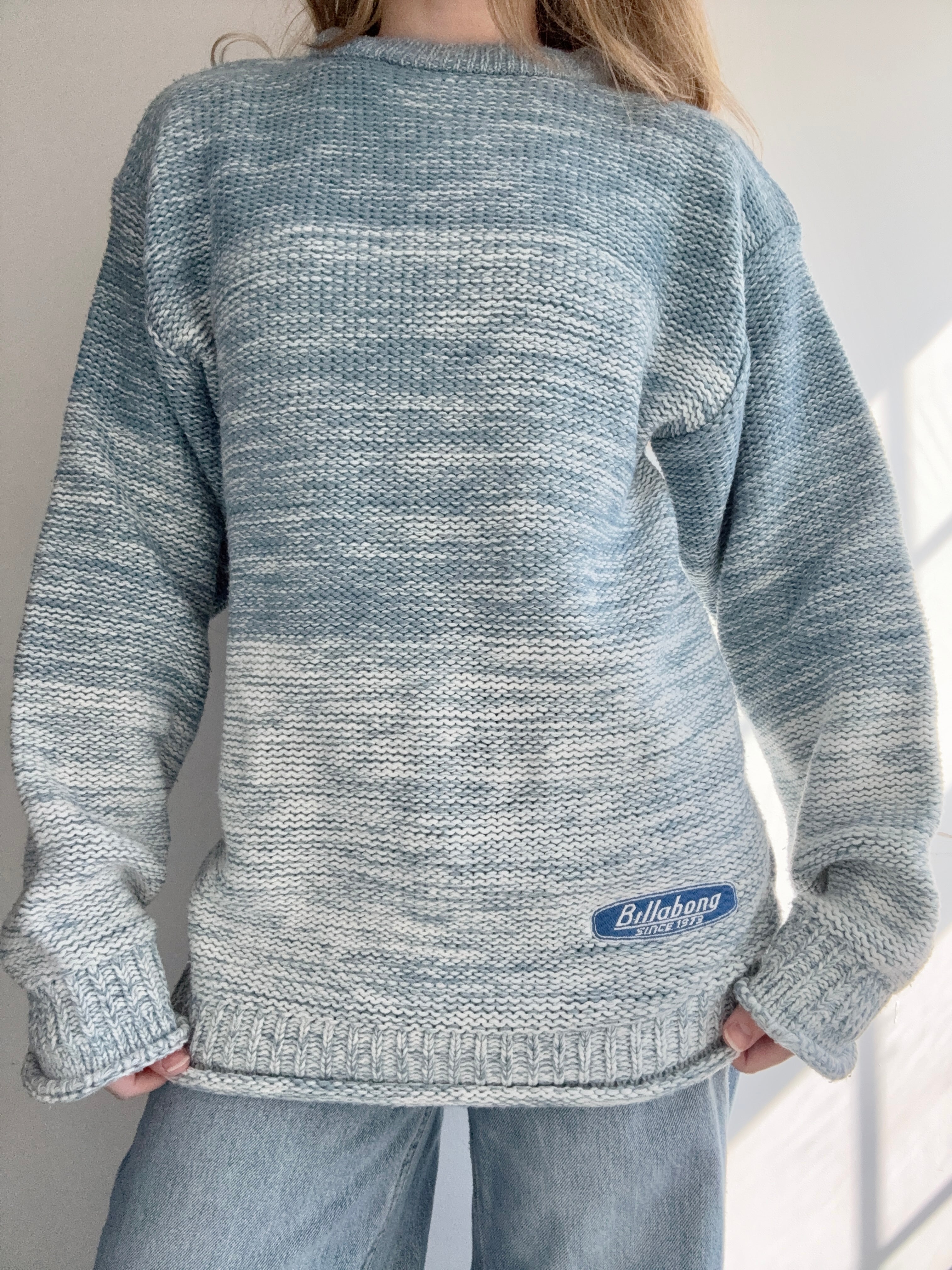 A rare knit gem from Billabong’s 90s collections. This thick and chunky knit sweater makes for the perfect coastal cold weather piece. Wear it on a chilly beach day or just for cozy lounging at home. We’re loving the blue gradient and fully embroidered Billabong logo at the bottom. 100% Acrylic.