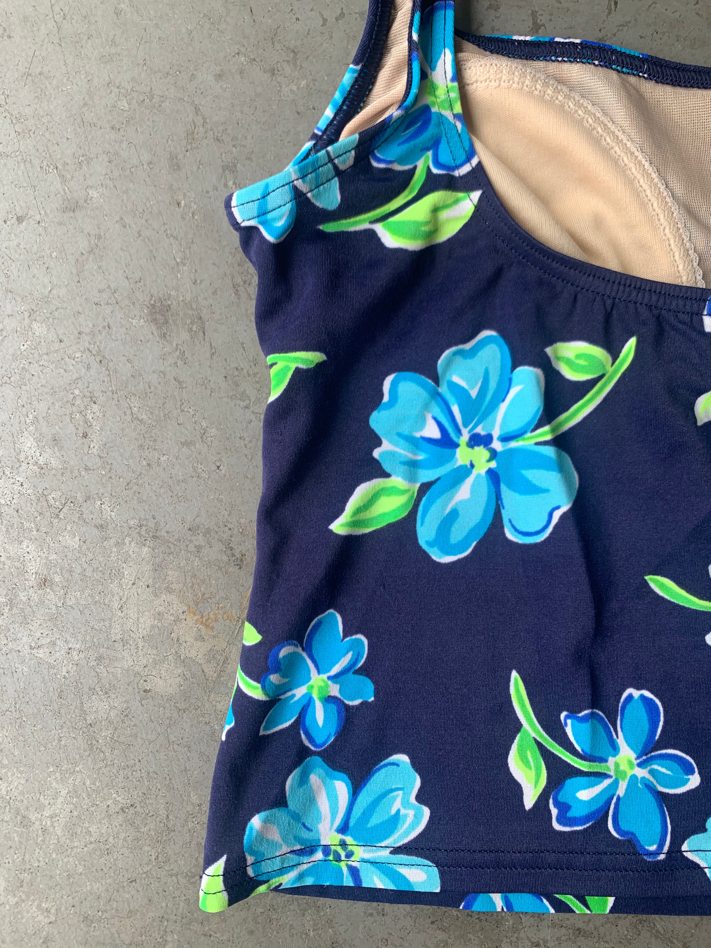 Wear out in town or to the beach — this 90s tankini is a cute piece whether you're in the water or just heading out on a hot day. Tropical florals make this a standout style that would look great with some denim shorts and sneakers. Has built-in padding.