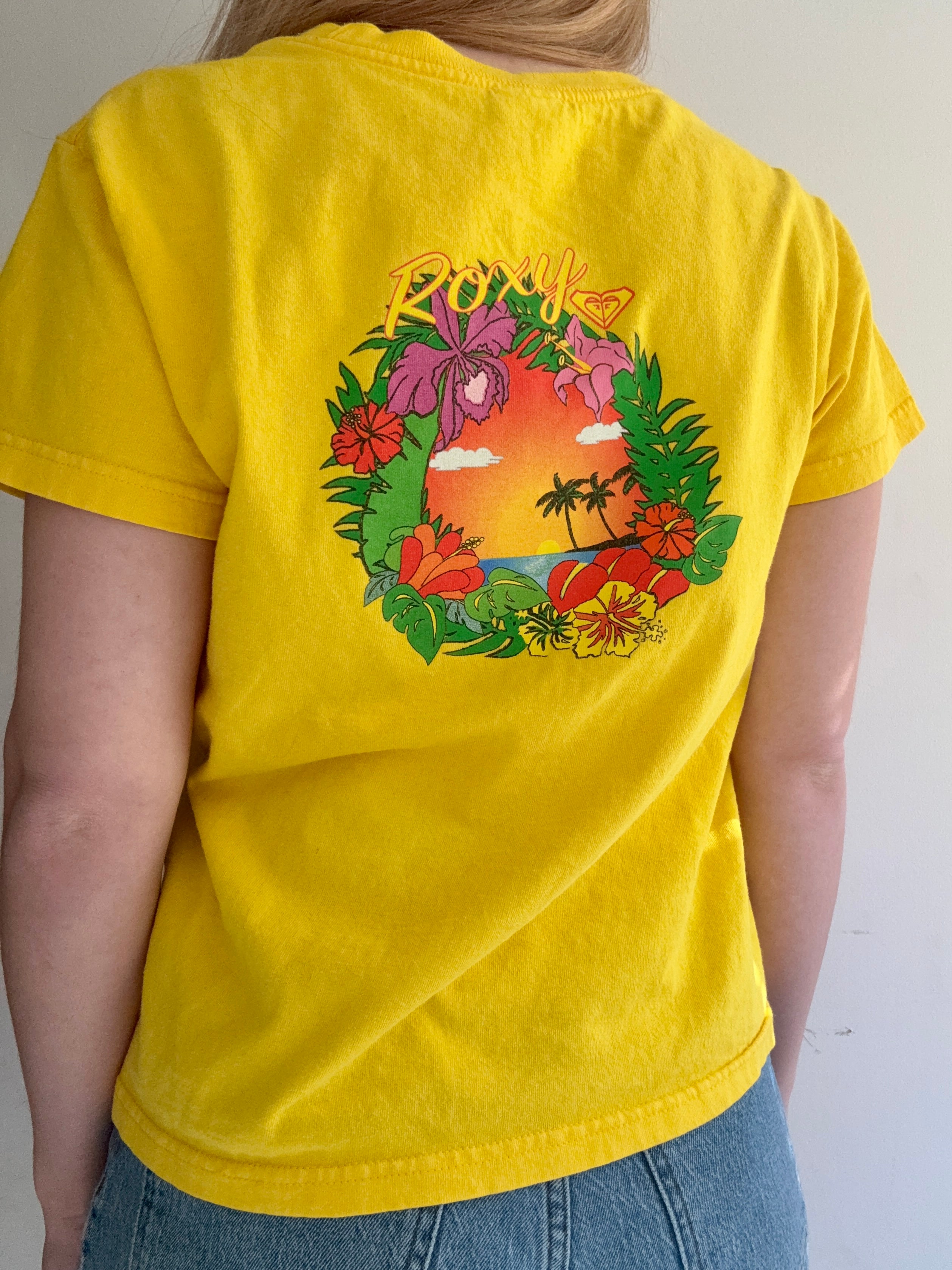A classic from Roxy, this 90s graphic tee is perfect for warmer days ahead. Love the bright yellow and colorful graphics — the ultimate summer tee if you love the look of vintage surfwear.