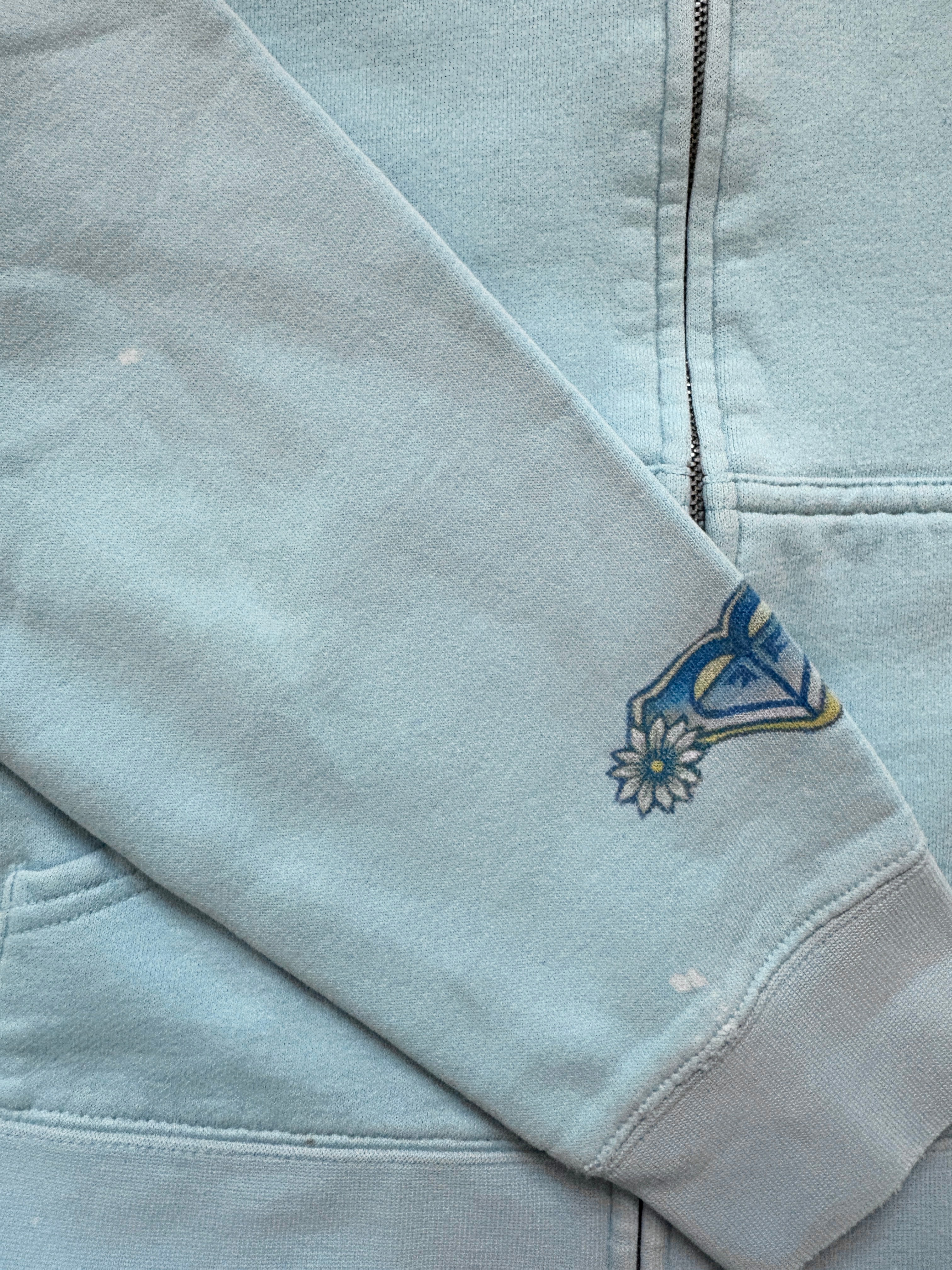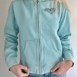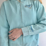 An absolute gem of 90s surfer girl style. Loving the color combos and design on this vintage Roxy hoodie, and the graphic on the back will remind you of the ocean wherever you go. Love the logo on the front to rep the brand. Even the zipper detail includes the Roxy logo!