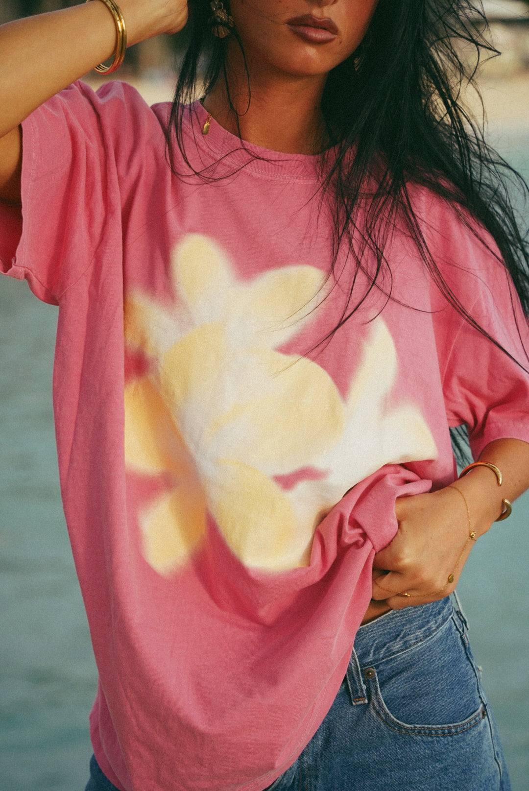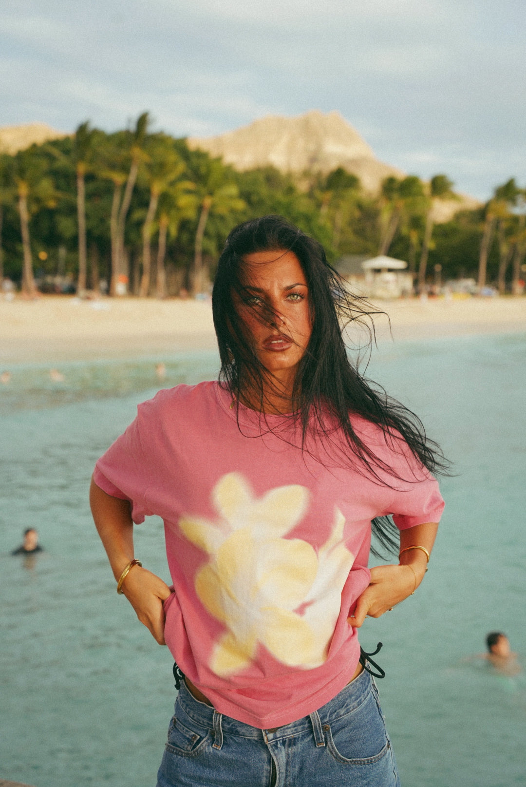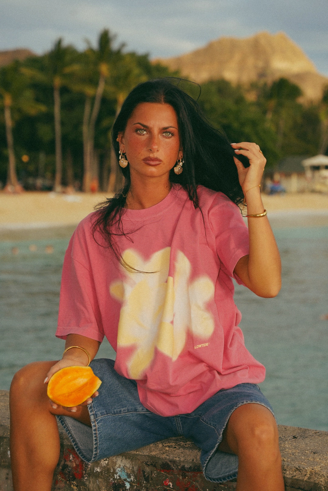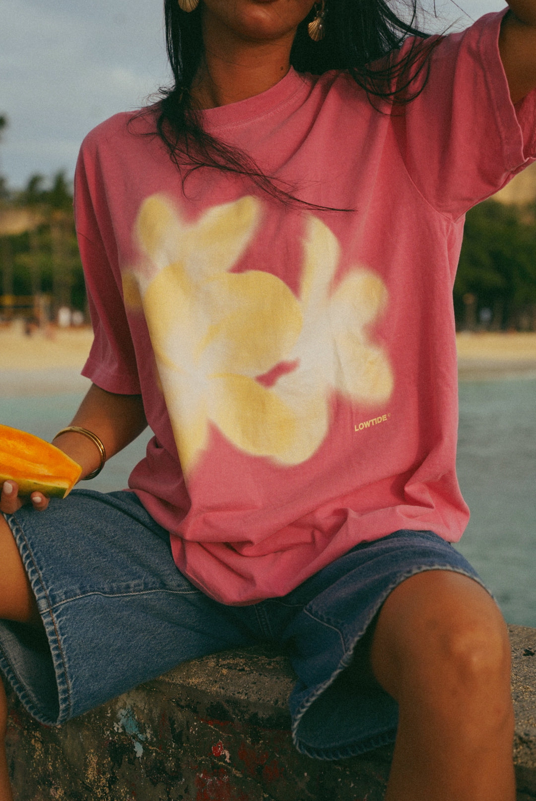 Inspired by the plumerias of Hawaii in full bloom. Oversized, soft-washed, garment-dyed tee made for shave ice runs, salt air, and sun-filled days.
