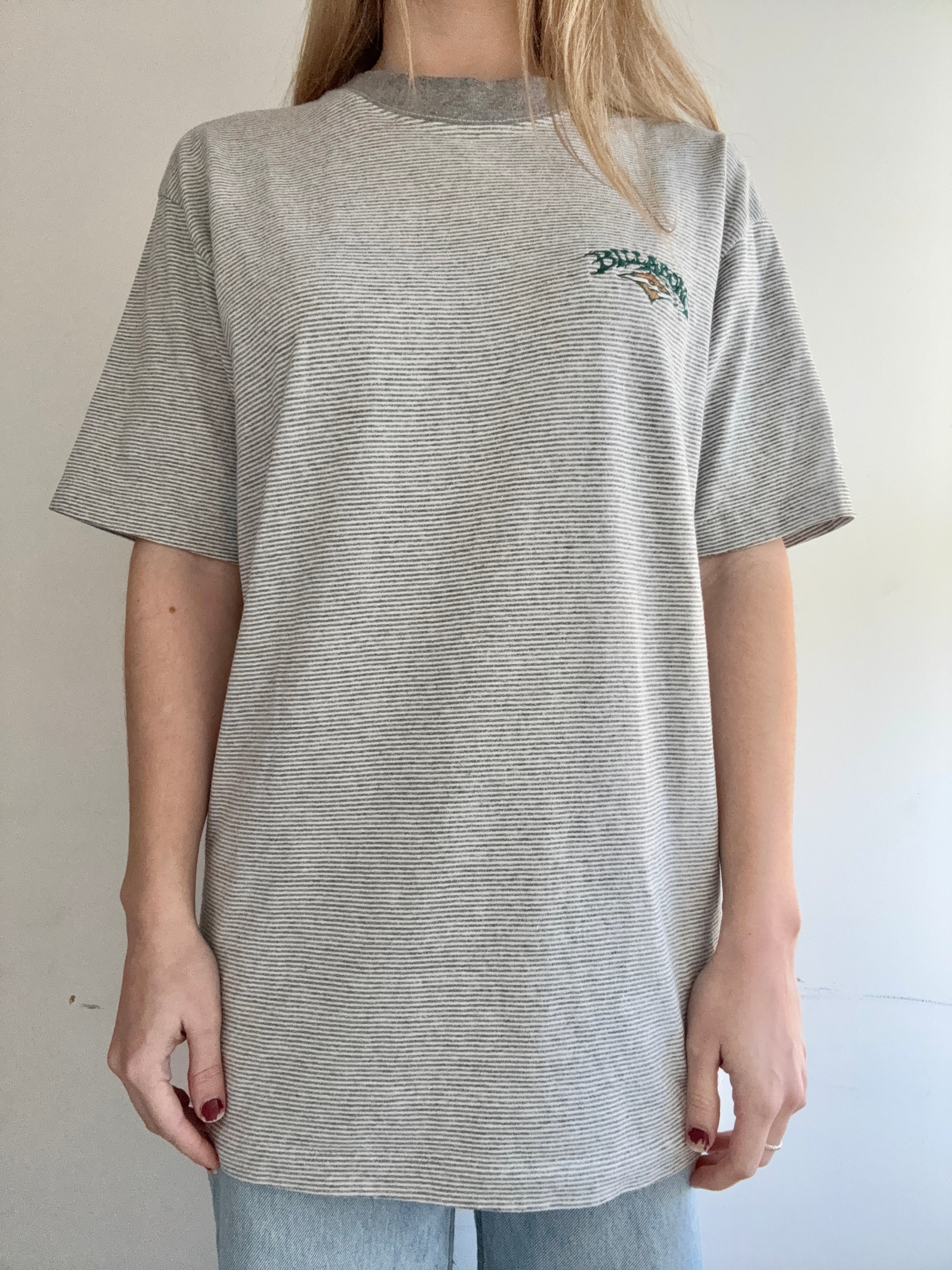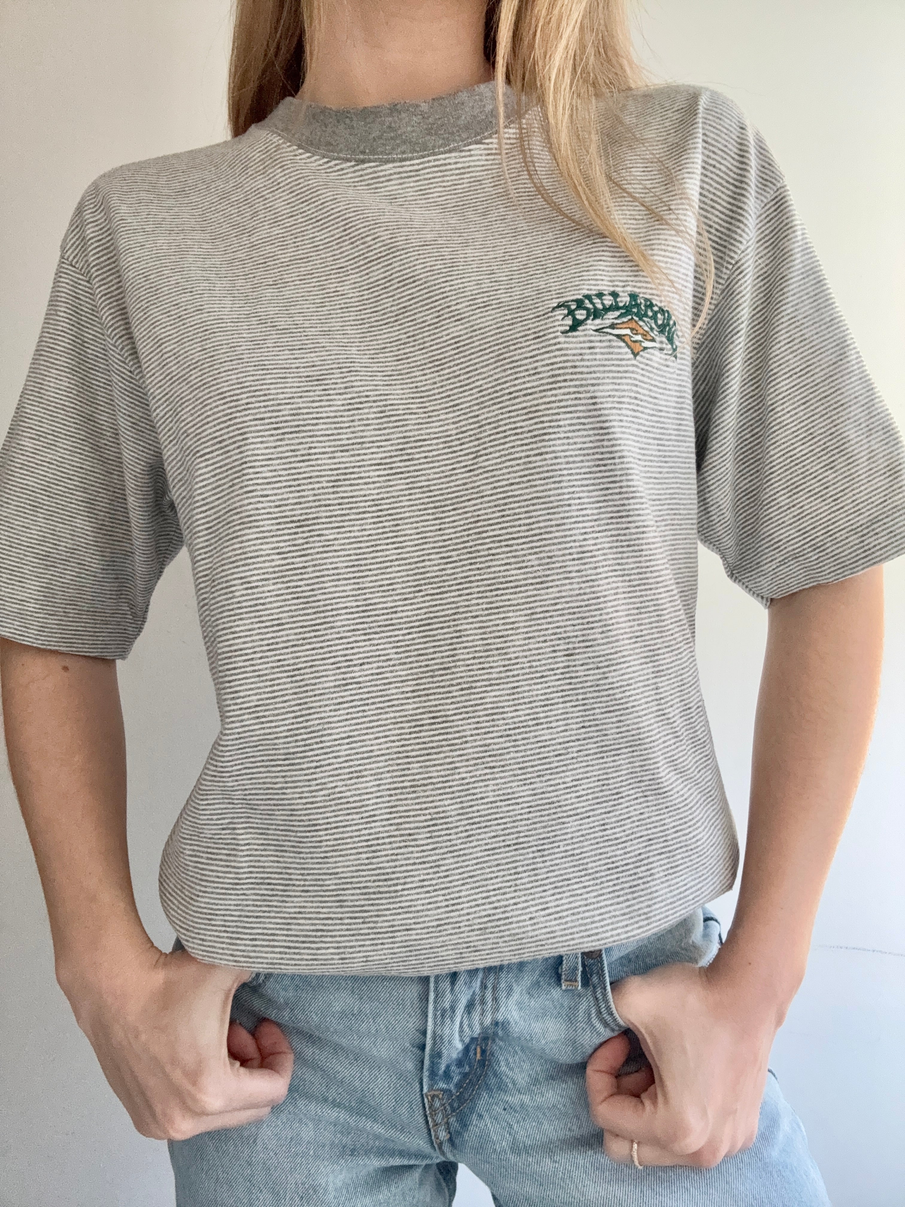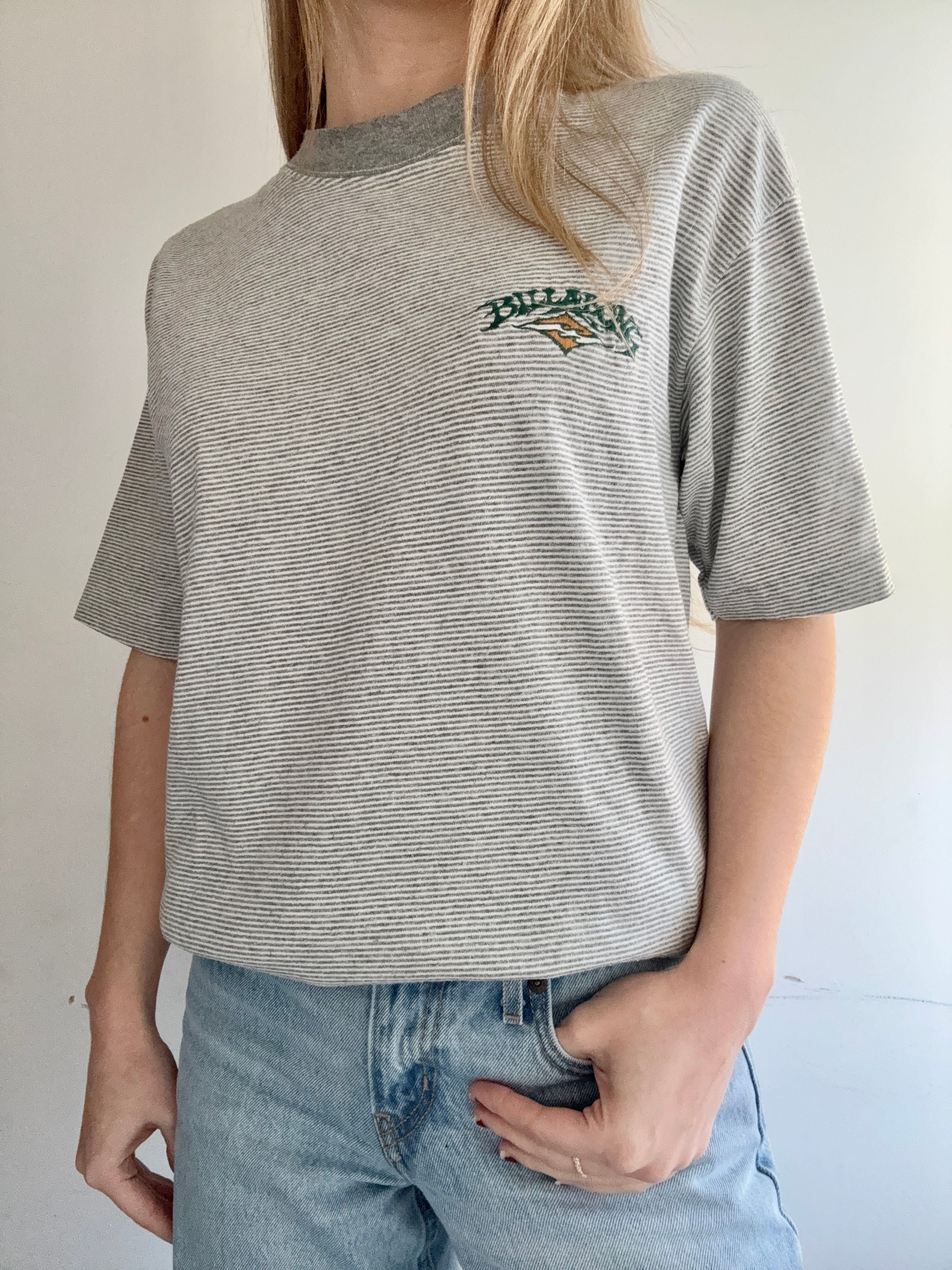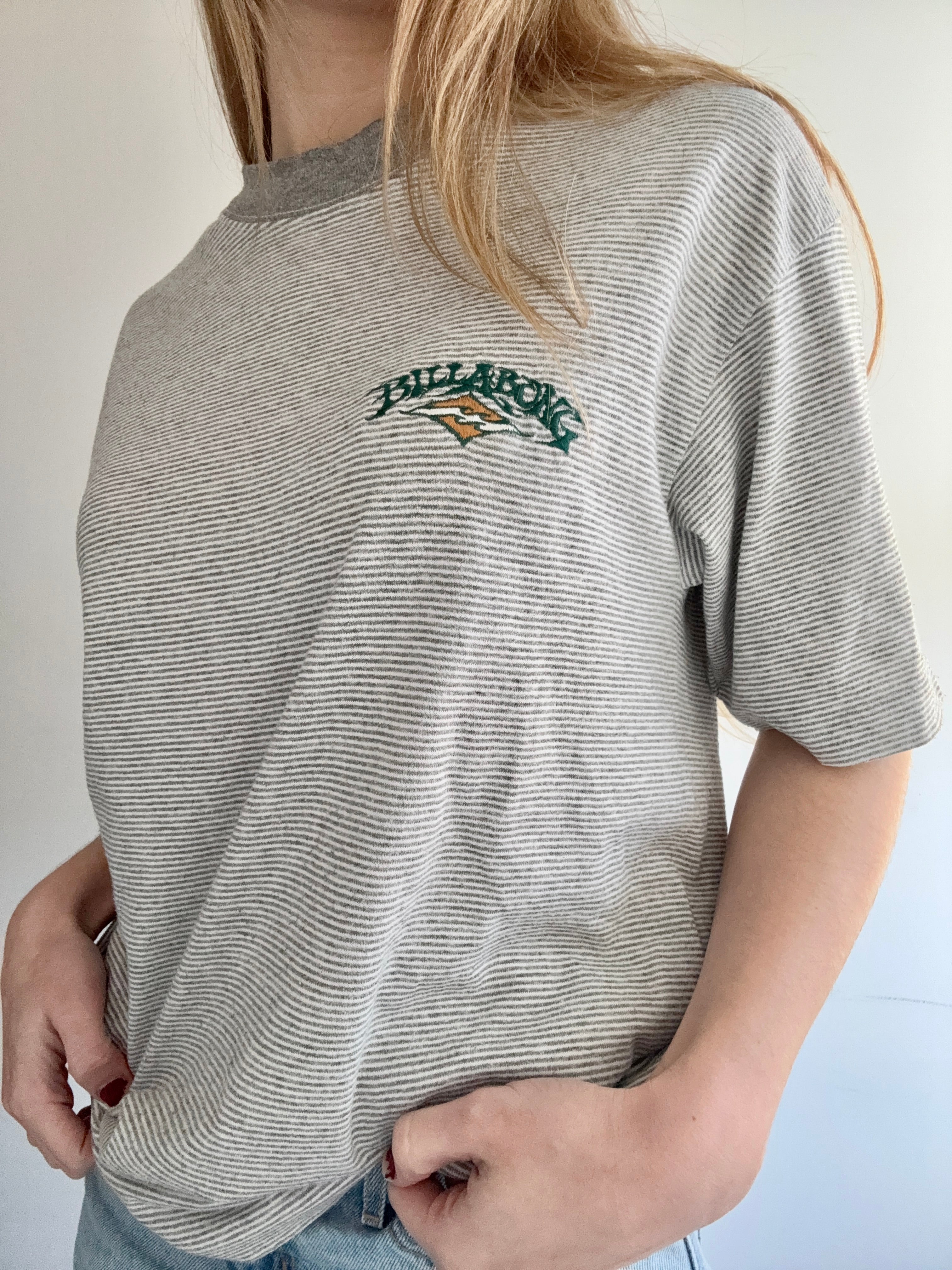 A classic tee from one of Billabong’s best decades. This vintage 90s striped tee features an embroidered Billabong logo and looks great with everything. Has a higher neckline that’s authentic to 80s and 90s surfwear and is perfect for building your vintage surf collection. Made in the USA!