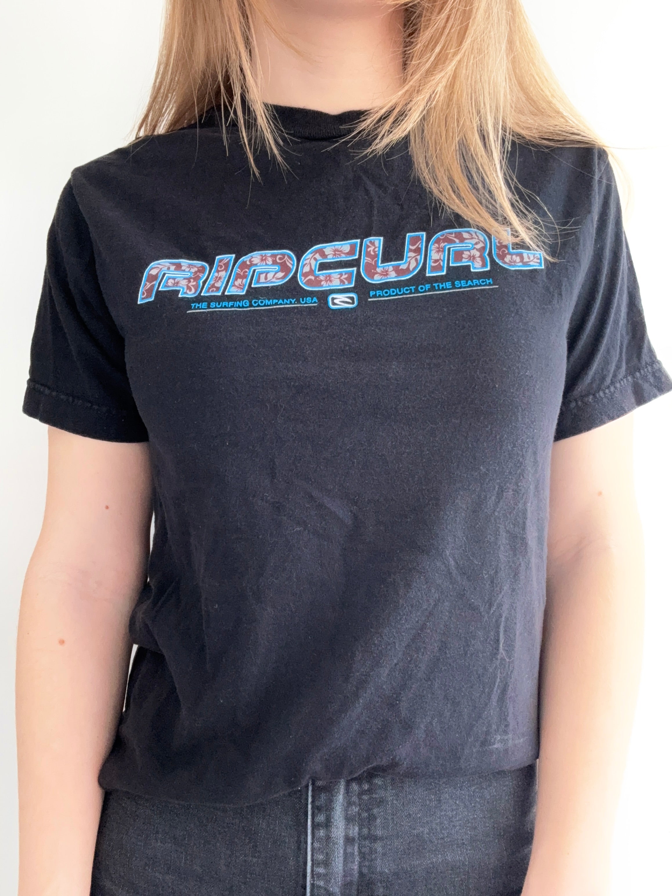 This vintage 90s Rip Curl tee features a big spell-out graphic across the front for casual style—great for heading out in town or hanging out at the beach.